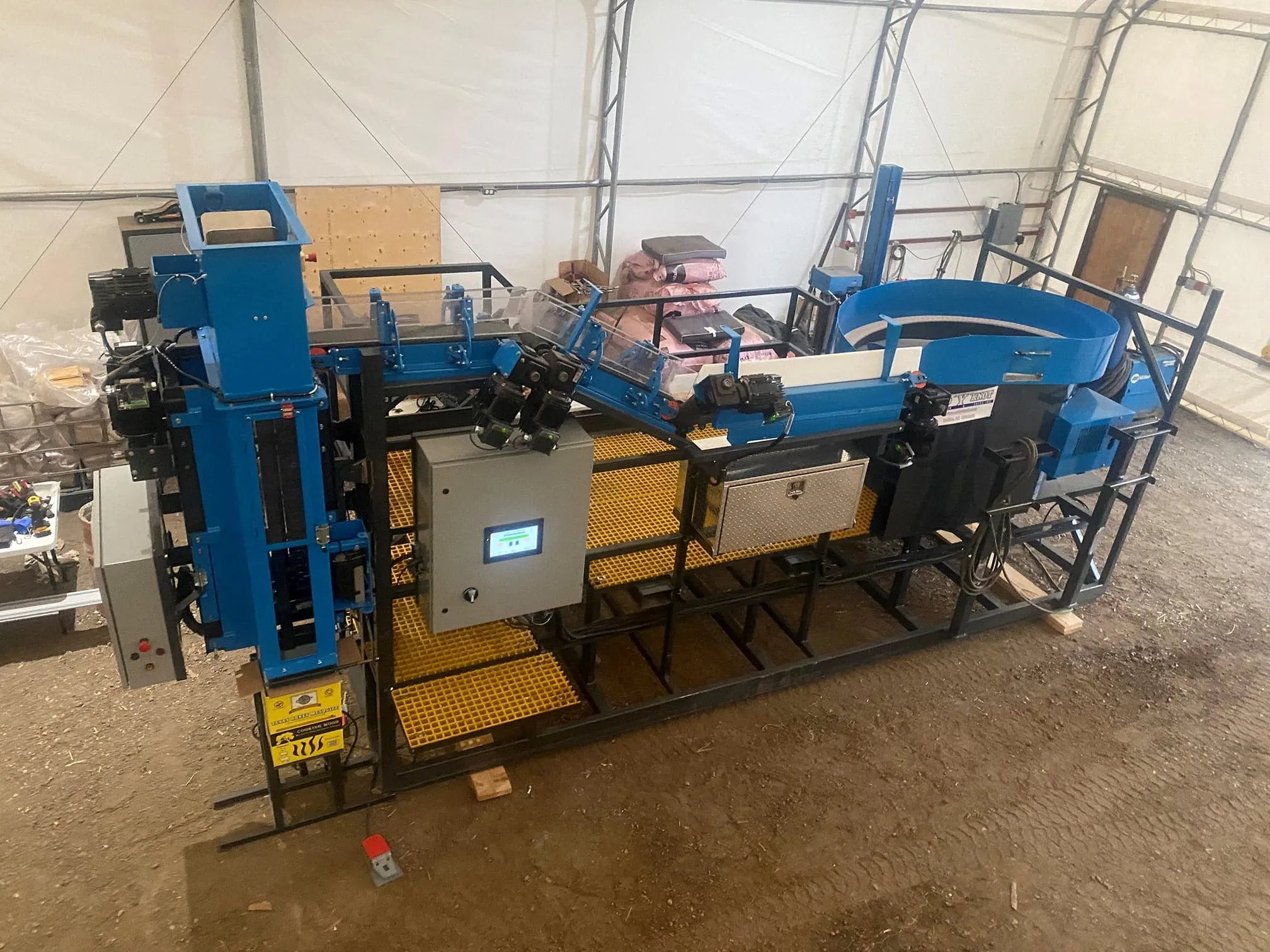 - 8 Foot long outfeed conveyor to move package material to turntable